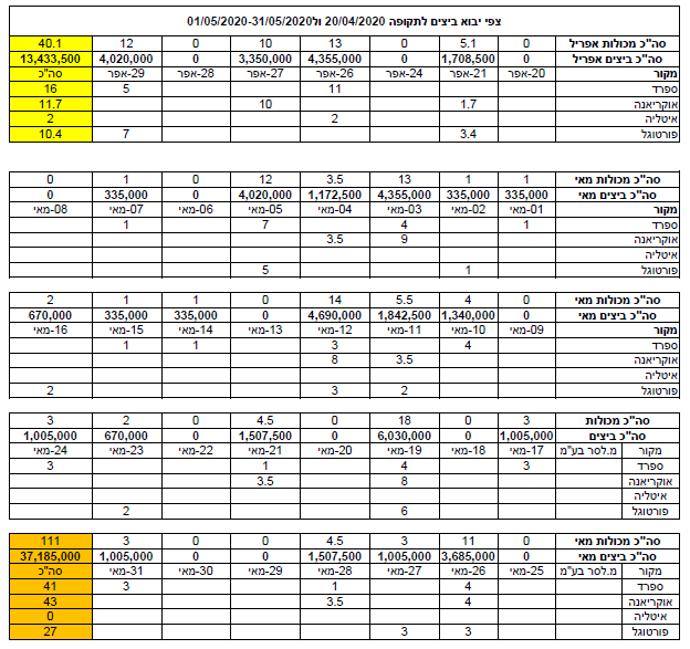 מצ"ב טבלת צפי הגעת ביצים מחו"ל, לפי ימים:
